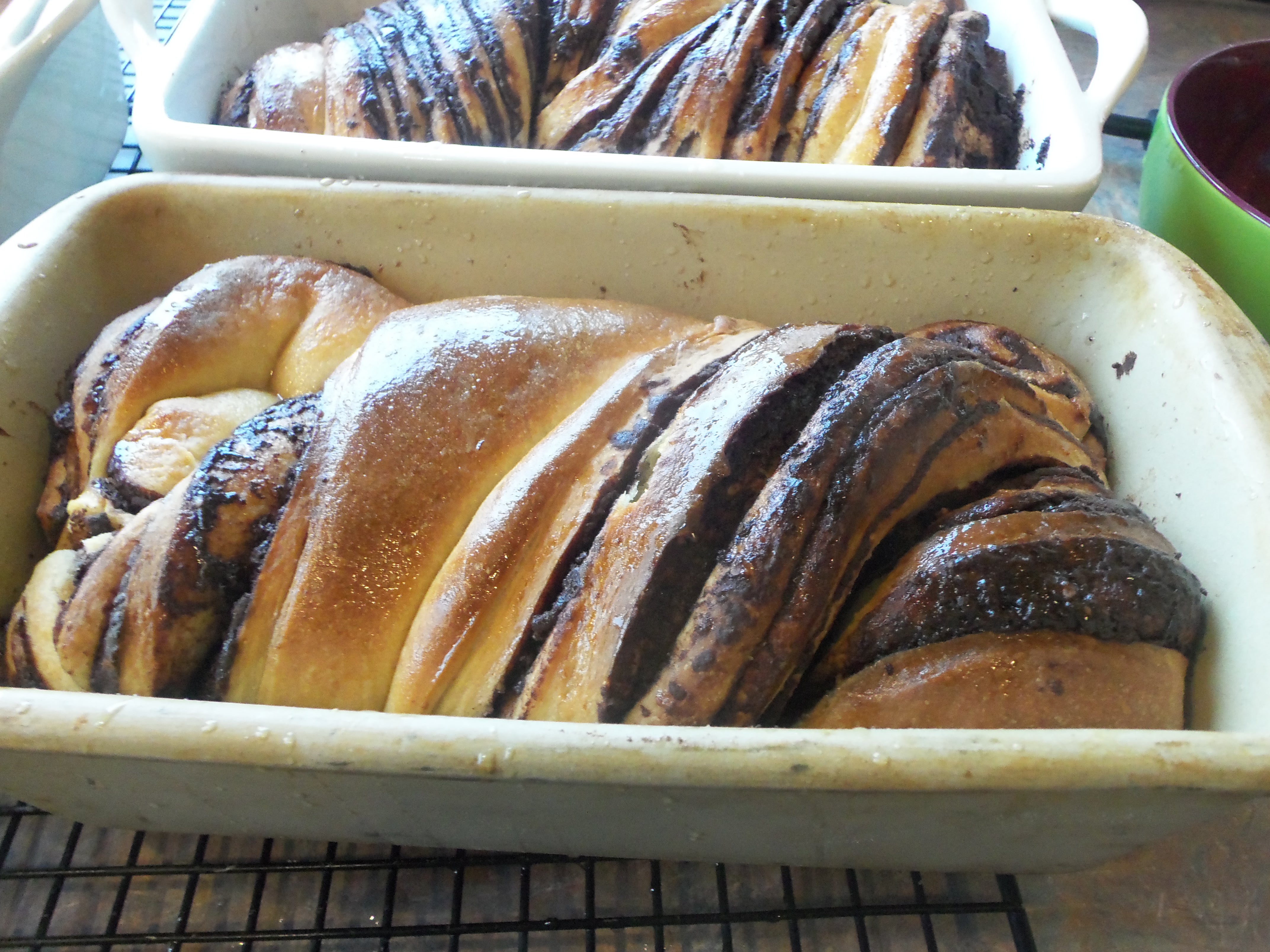 Chocolate Babka Bread. It’s a jewish thing, so it would make a good Hanukkah treat. I like it a lot better hot, when the chocolate is all melty and everything. 🙂
