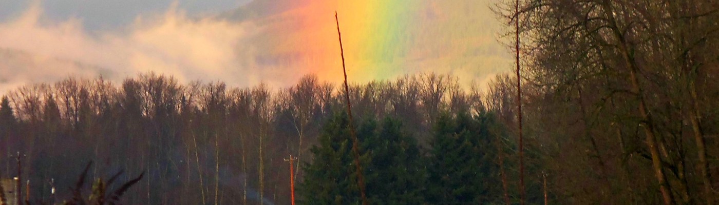 We were driving past the river last week and saw this rainbow. I handed Dad my camera to take picture and he did, and then suggested I get out and take one with the river in the foreground.