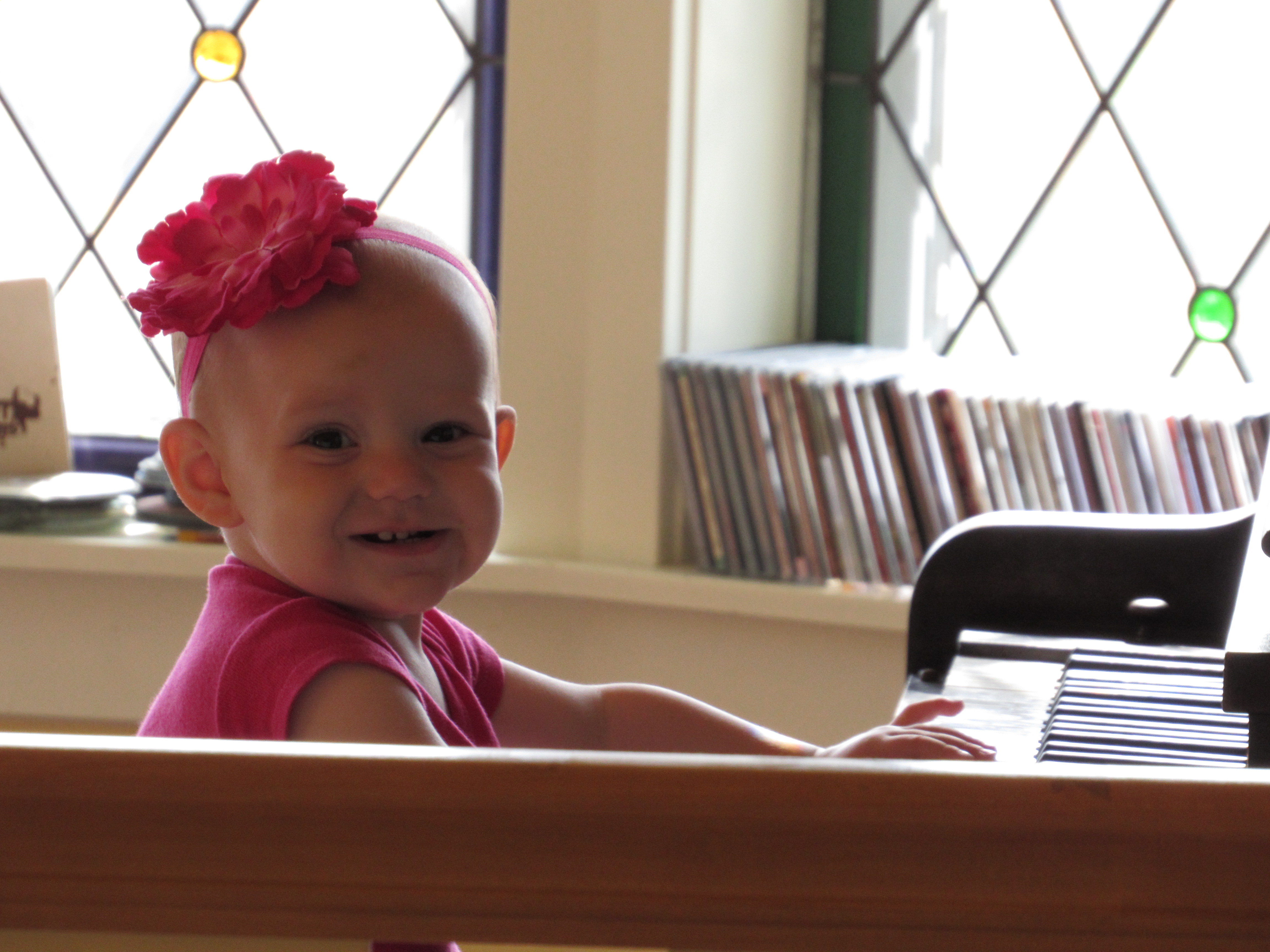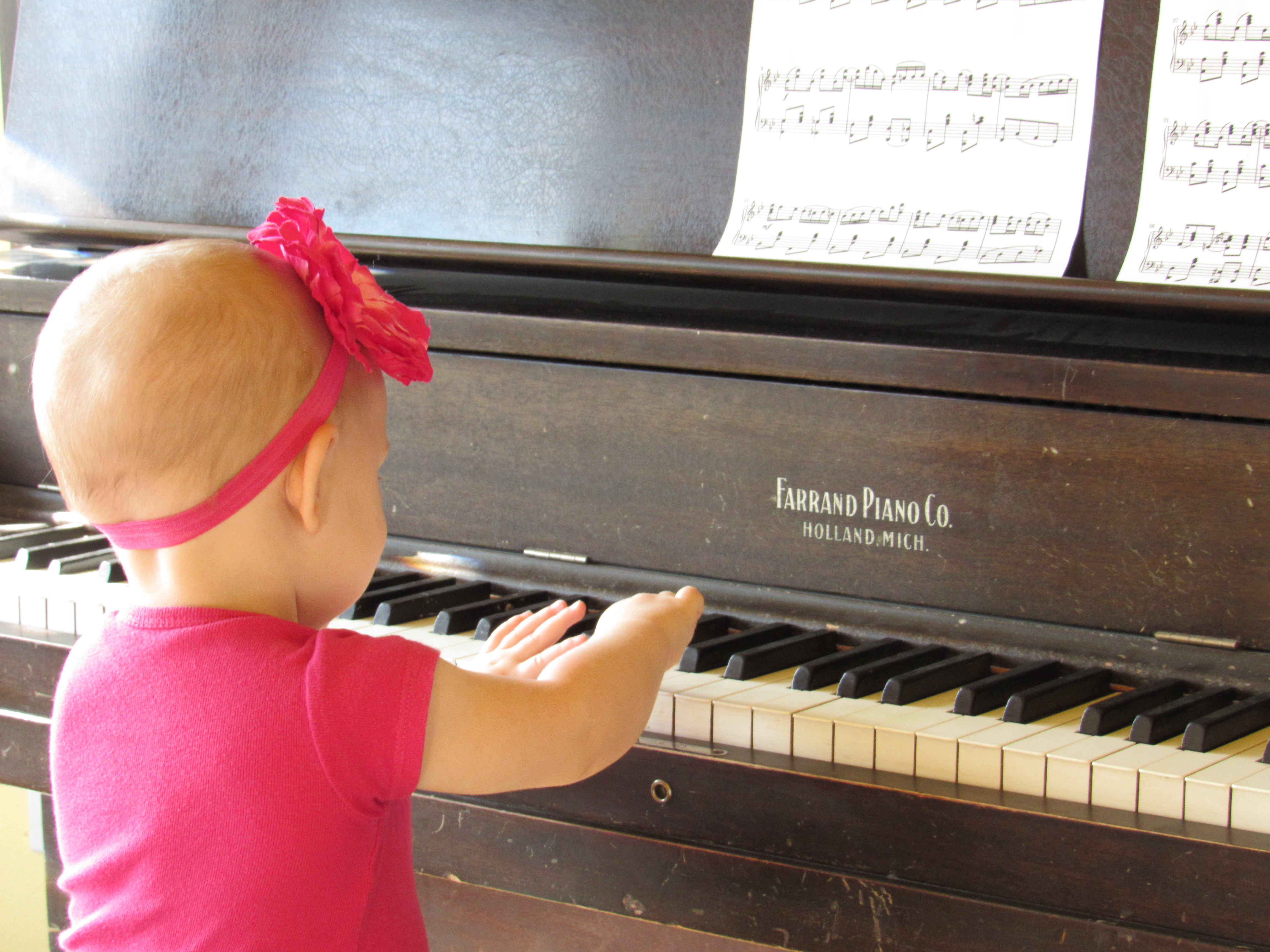 So, I’m going to share my most recent favorites of my 1 year old sister, Maggie, at our piano.