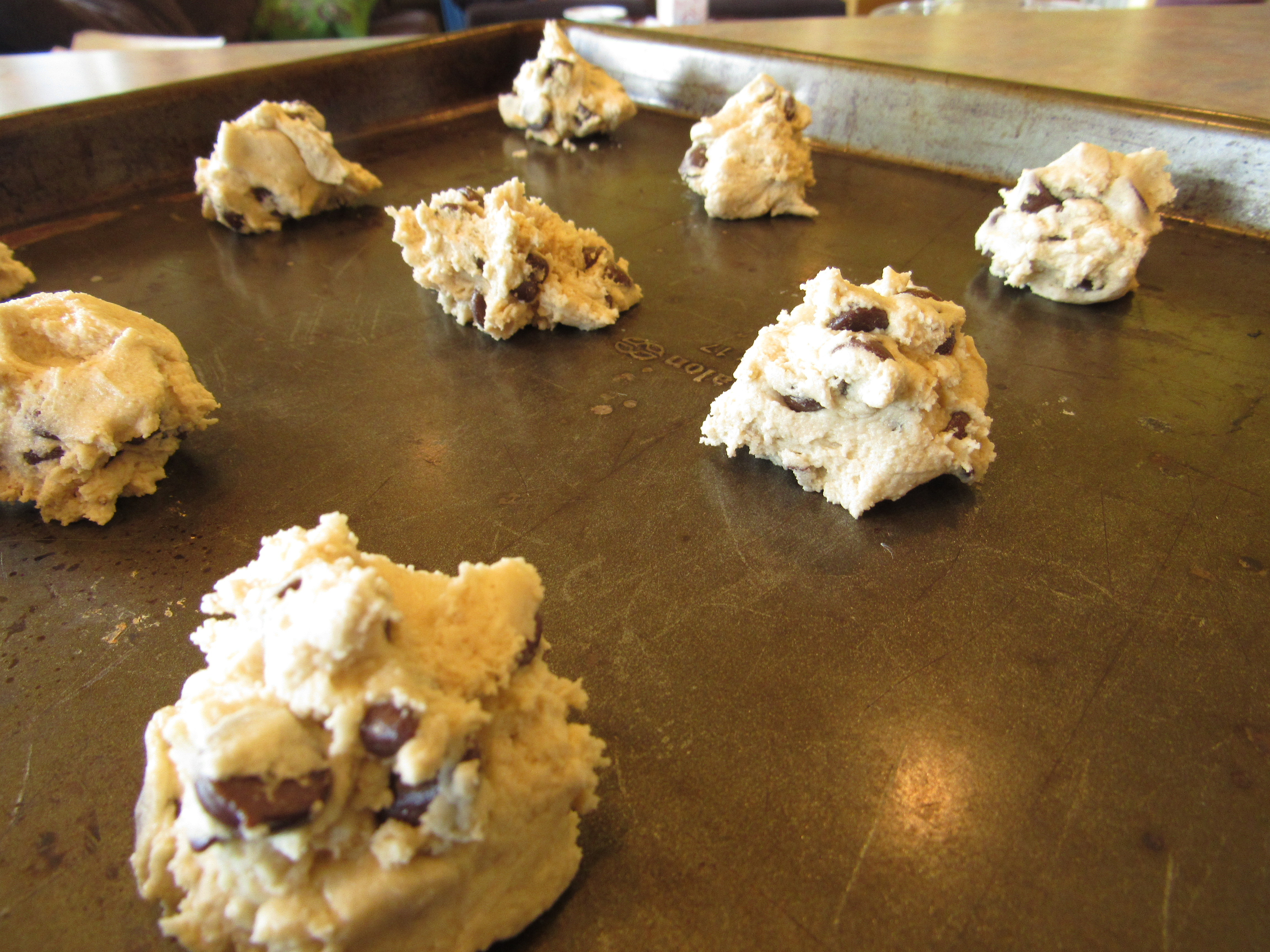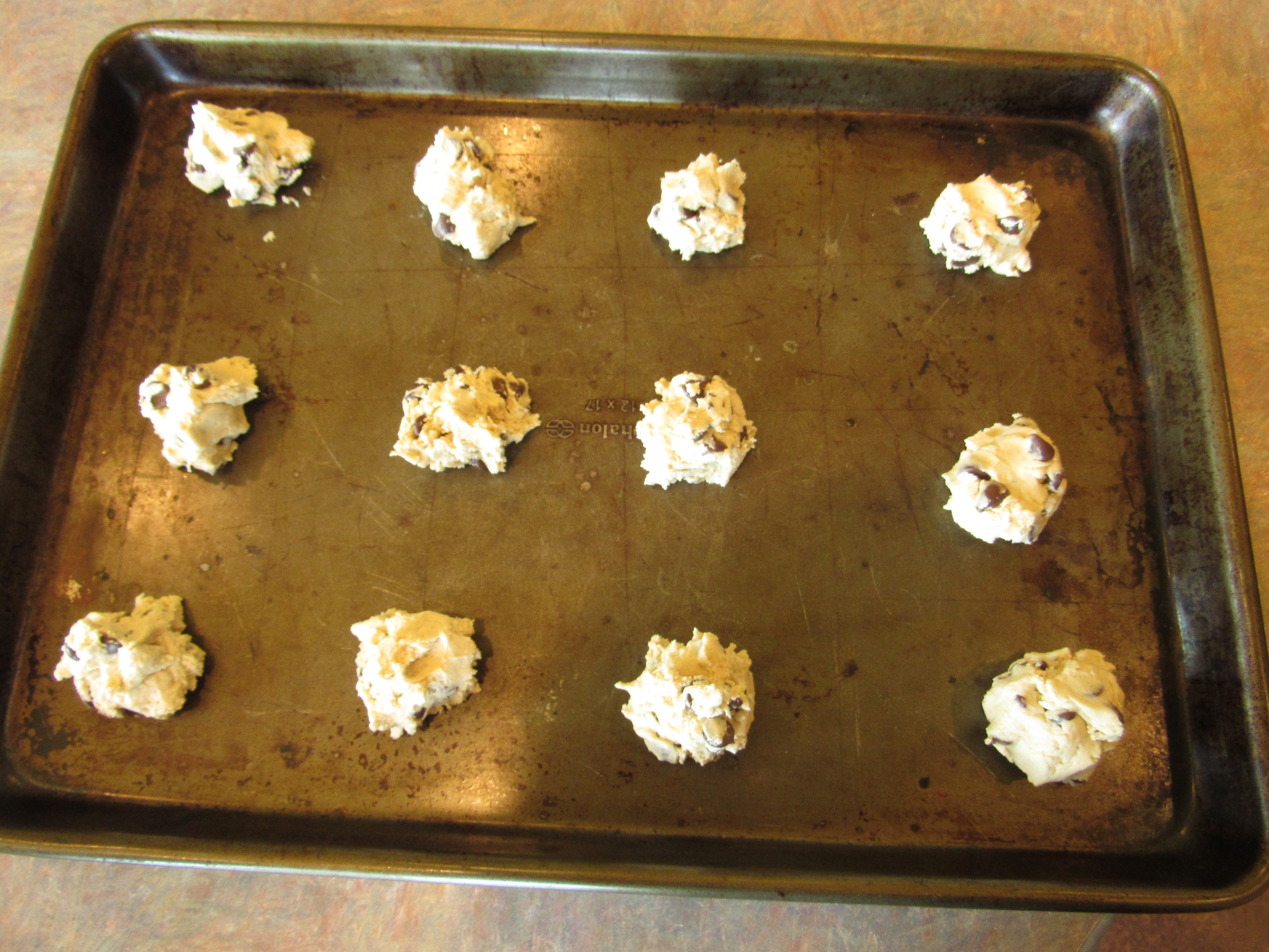 7. Put 12 balls of dough on one of the cookie sheets. If you finished and your oven isn’t up to heat yet, congratulations!