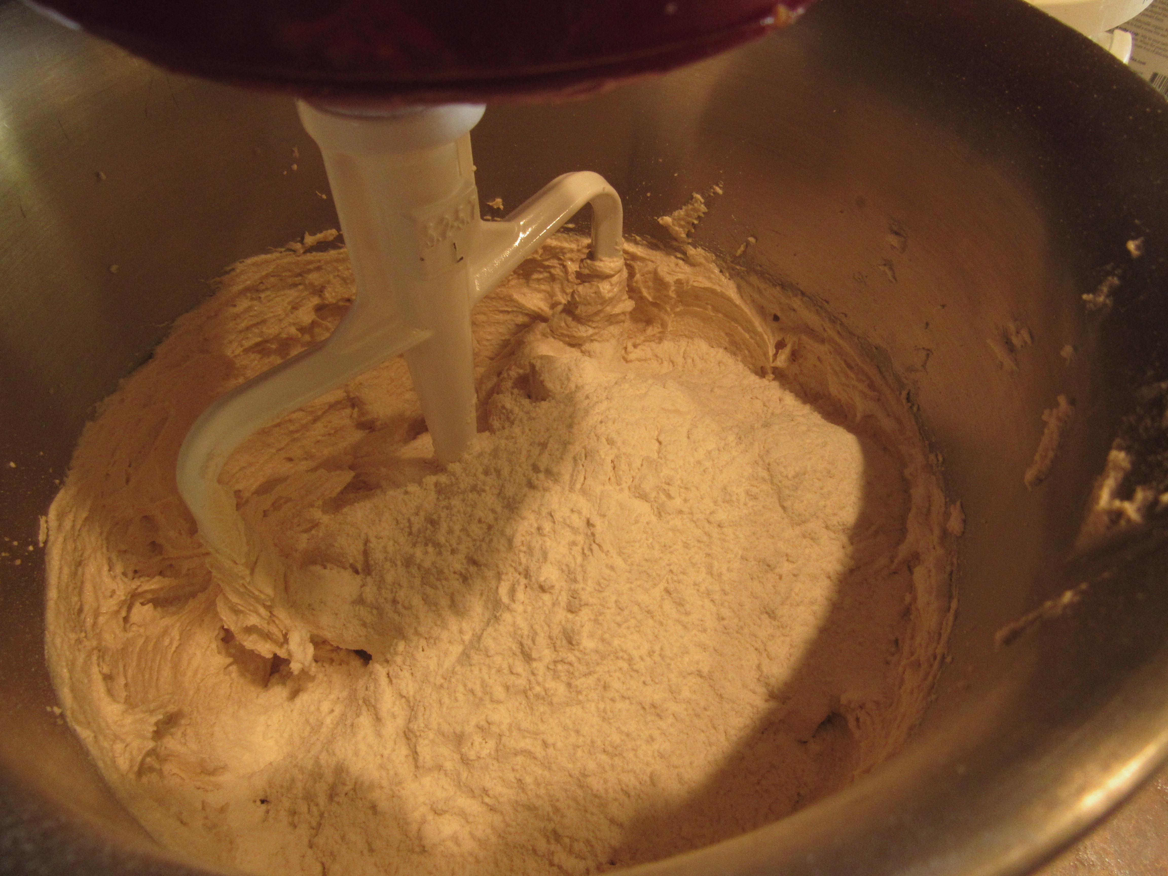 5. Add the flour mixture. Start the mixer on slow after adding, or you’ll end up looking like the abominable snowman.