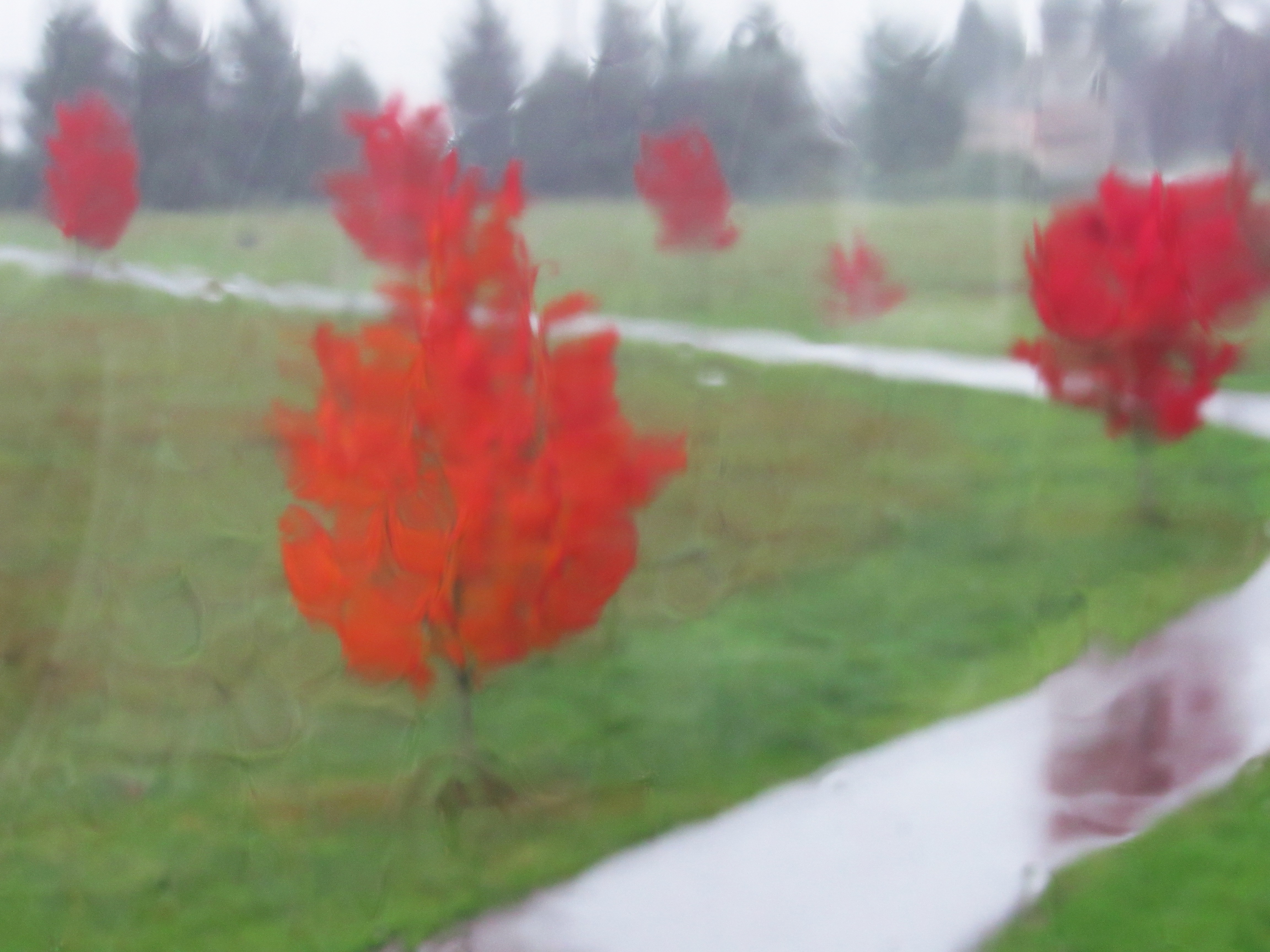 Through a rainy window. Doesn’t it look like a painting?