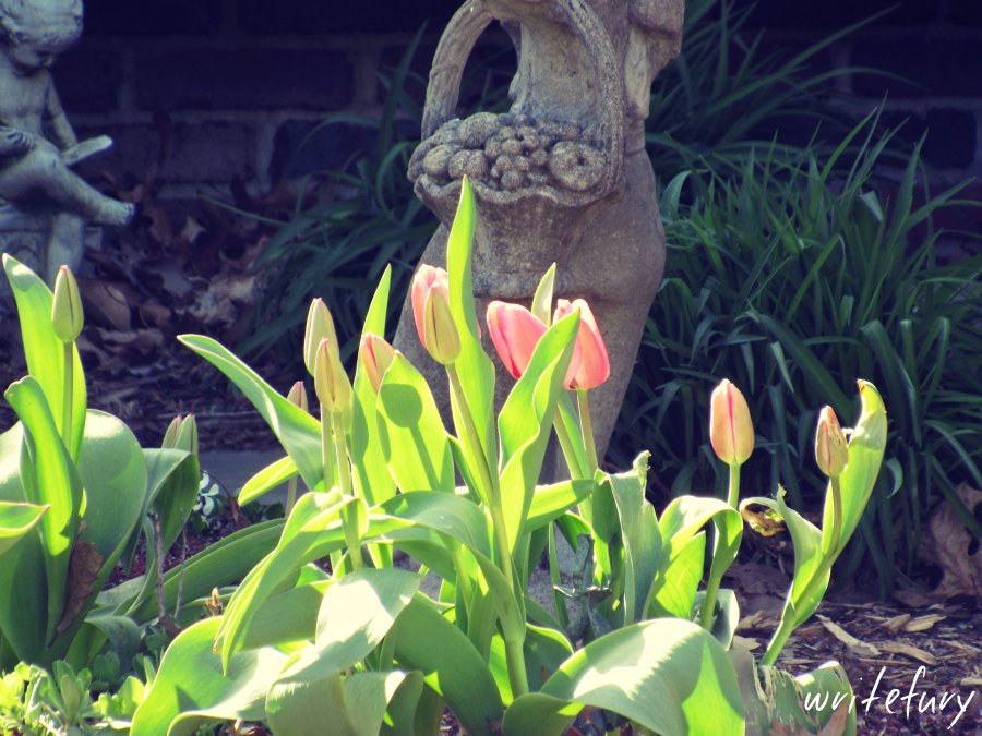 Tulips! (and a weeping angel out for groceries in the back but shh ignore her)